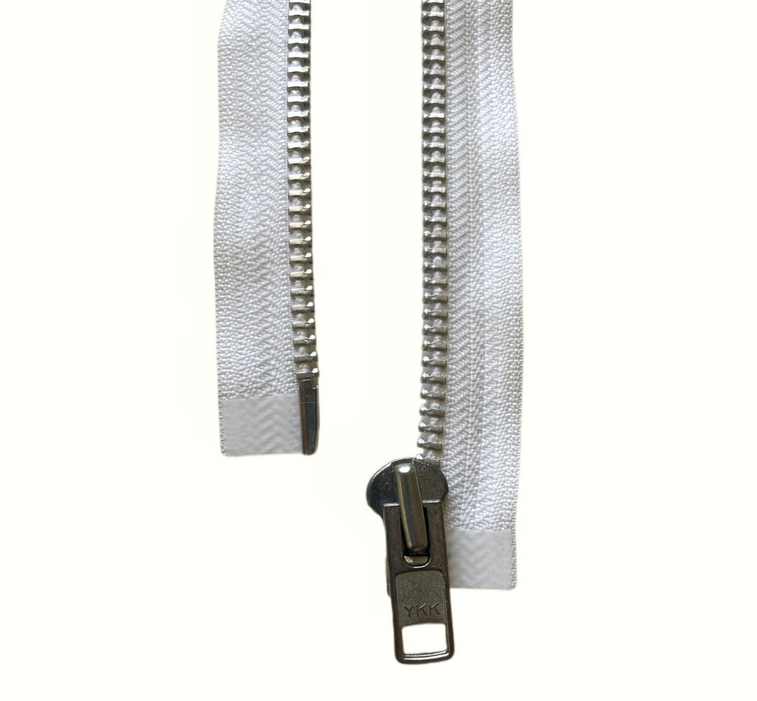Also known as open-ended zippers, these are designed to completely detach into two separate pieces when unzipped. They feature a pin and box at the bottom that allows for full separation, making them ideal for garments or products that need to open fully from top to bottom. Separating zippers are available in various lengths, materials, and finishes — often used where flexibility and ease of wear are key.